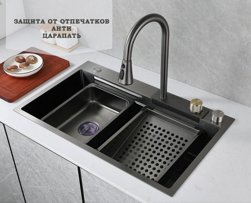 Мойка кухонная накладная 11194 750*450 мм нержавейка+смеситель JoyLink